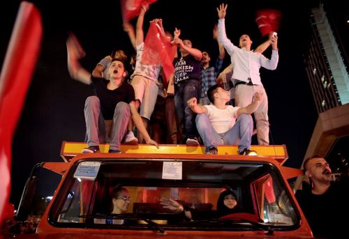 Public reaction to the coup attempt in Turkey on July15, 2016, organized by members of a...