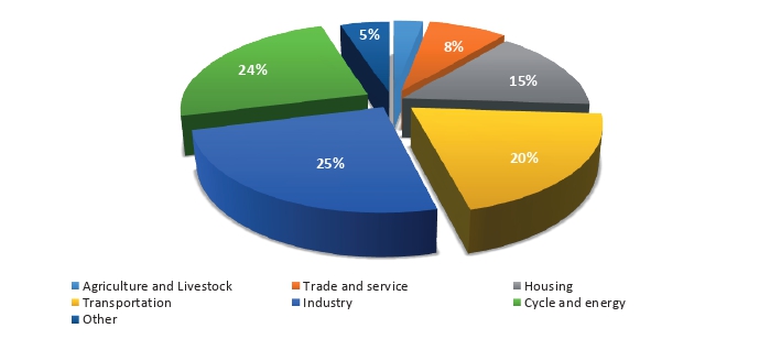 In the field of renewable energy, there are developments and expectations in Türkiye close to global standards. According to the 2019-2023 Strategic Plan prepared by the Ministry of Energy and Natural Resources, Türkiye aims to increase the ratio of the electricity installed power based on domestic and renewable energy sources to 65 percent of the total in- stalled power to ensure sustainable ESS.30 Türkiye’s sectoral energy consumption is seen in Figure 2; industry at 25 percent with 24 percent stand out as the sectors with the highest energy consumption. These are followed by the transportation sector with 20 percent. Considering these rates, the importance of energy efficiency studies in sectors with high energy consumption is increasingly obvious.31