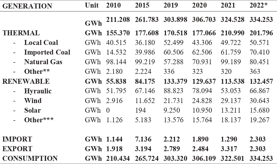 Table 2: Electric Generation, Consumption, and Trade of Electricity in Türkiye
