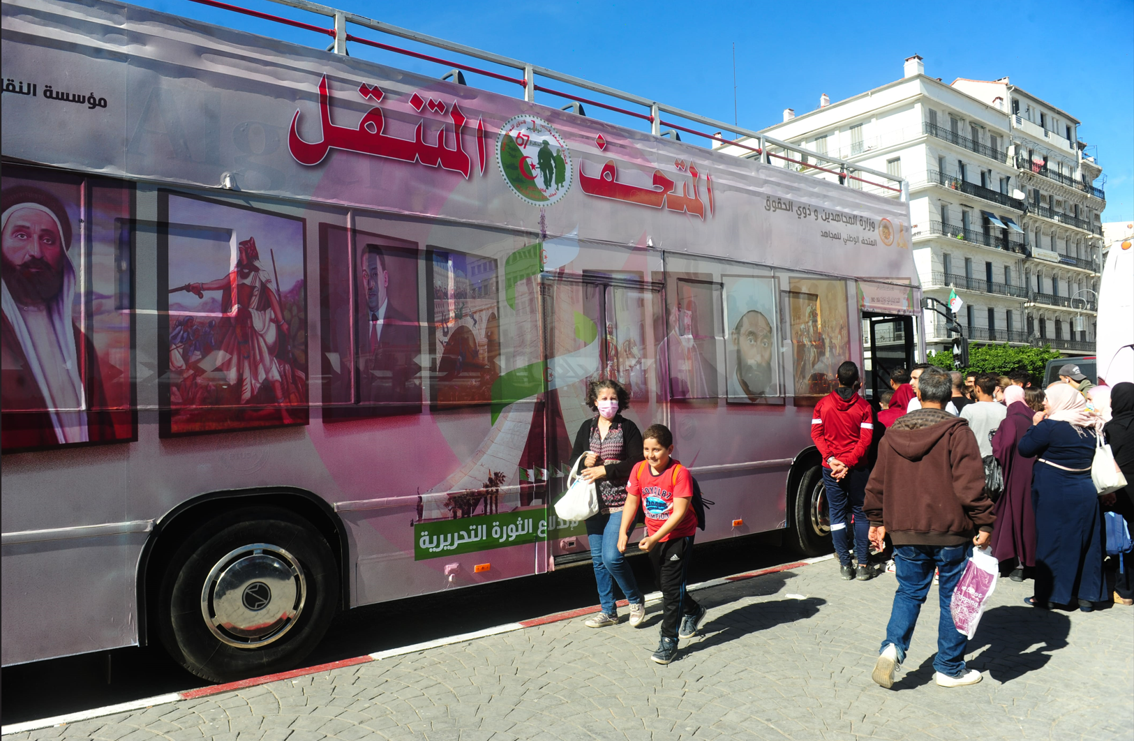 Buses converted into mobile museums to educate the public on France's colonial-era opened for visitors to celebrate the 67th anniversary of Algeria’s Revolution from France, in Algiers, Algeria on November 1, 2021. MOUSAAB ROUIBI /AA