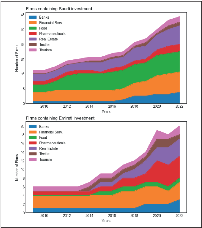 Investors affiliated with the royal and prominent families of Saudi Arabia and the UAE played a significant role in directing investments to these priority sectors, as well as guiding other investors to discover lucrative business opportunities in the country