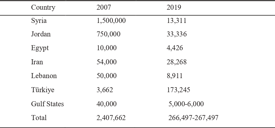 The Middle East has been engulfed in many crises due to political instability, wars, ethnic conflicts, proxy wars, and foreign interventions in the last two decades. Iraq has witnessed several catastrophic issues because of these reasons. Particularly, the Iran-Iraq War (1980-1988) and the First Gulf War (1990-1991) devastated Iraq, which was followed by the U.S. intervention in Iraq in 2003.21 The intervention resulted in the destruction of the economy and infrastructure of the country, and hundreds of thousands of people lost their lives.22 After the intervention, a new political and social order under the influence of Shias was established, which was backed by U.S.-driven agents. The suppression of the Iraqi people by the Saddam Hussein Administration and foreign intervention deteriorated the political and social stability of the country. Therefore, Iraqi people had to move out of the country to have better living conditions.23 Iraqi refugees migrated to many different countries, including the Middle East and Europe.24 However, the first resort for Iraqi refugees has been Syria due to the open-border policy for refugees.25