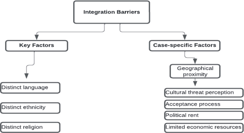 Integration is a comprehensive process that can be achieved through several components. While these components have been discussed above, it is critical to be aware of some factors that prevent this process. This article has adapted a method that determines further dynamics as well as key factors and understands the relationships among the dynamics so that the social reality of integration can be understood better.12 As suggested by Dimitrov and Angelov, the main factors of integration mentioned would be insufficient to explain the social reality of specific cases. Therefore, the authors would need to identify case-specific dynamics in addition to key factors: