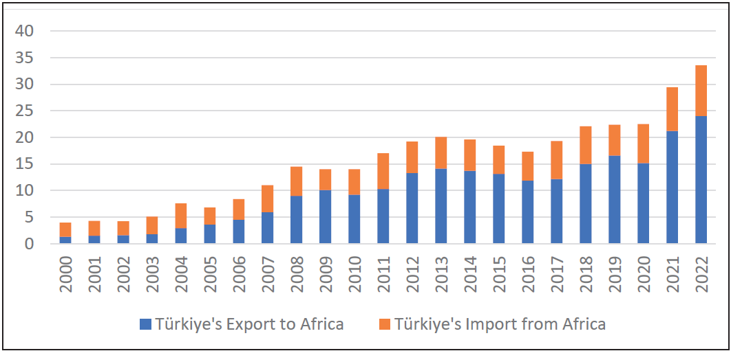 Graph 3: Türkiye-Africa Trade Volume (2000-2022, billion $)
