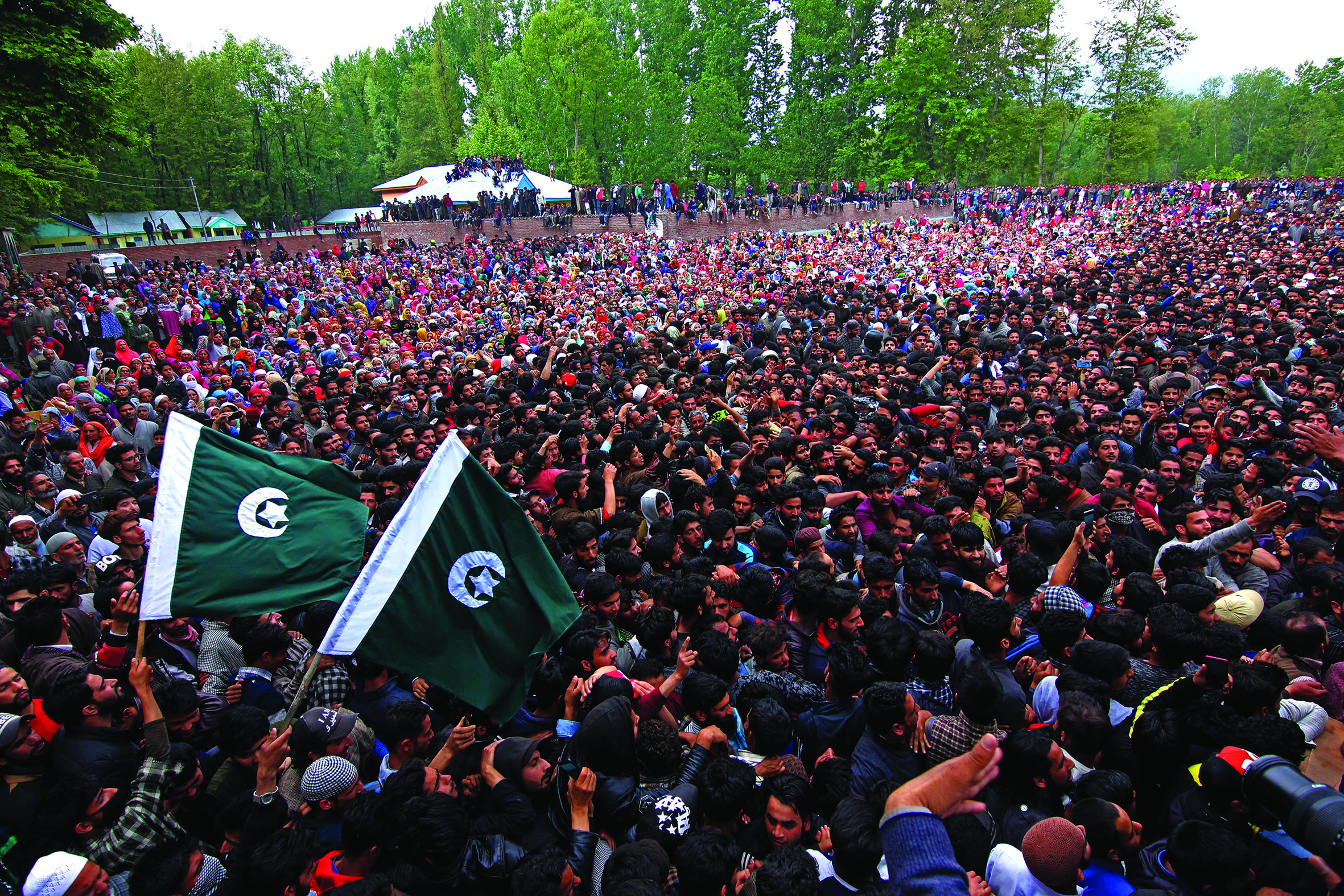 Thousands attend the funeral of top militant commander Lateef Ahmad Dar in his home village south of Srinagar on May 3, 2019. He was killed in an encounter with Indian forces in the Imam Sahab area of South Kashmir’s Shopian district. FAİSAL KHAN / AA
