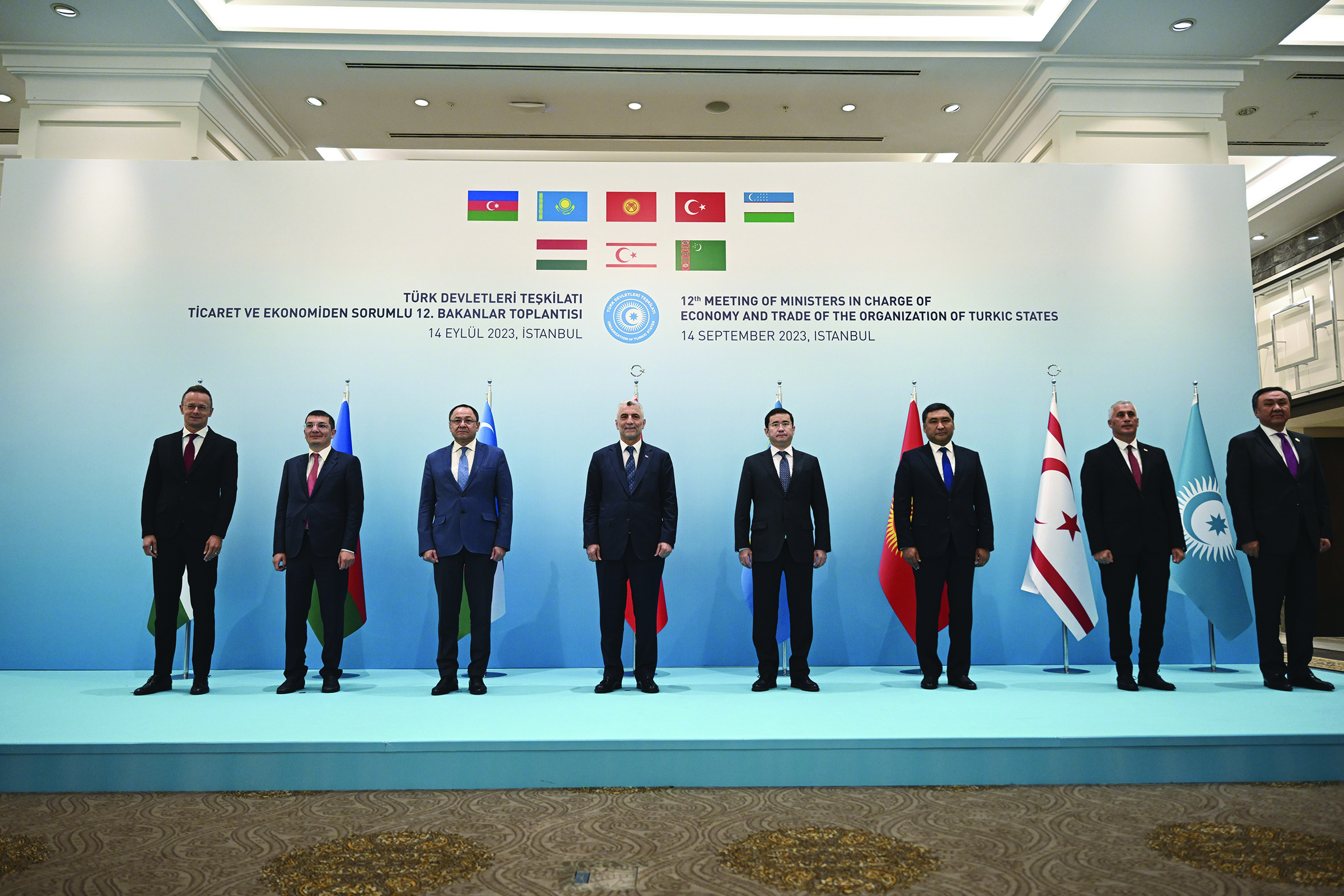 A family photo of the ministers responsible for economy and trade of the OTS after the 12th meeting held in İstanbul on September 14, 2023. ARİF HÜDAVERDİ YAMAN / AA