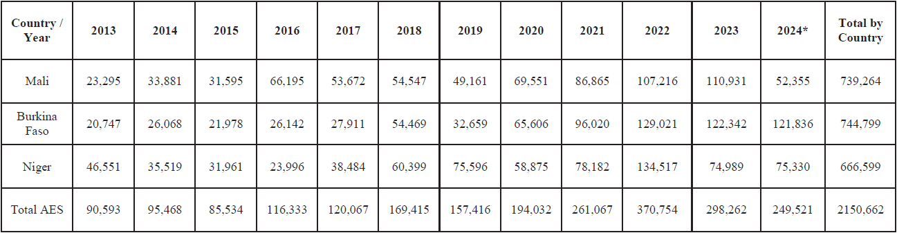 29. Christina De Paris and Ciro Murillo, “The Sahel: Mid-year Metrics 2024,” ACLED, (August 14, 2024), retrieved September 23, 2024, from https://acleddata.com/2024/08/14/the-sahel-mid-year-metrics-