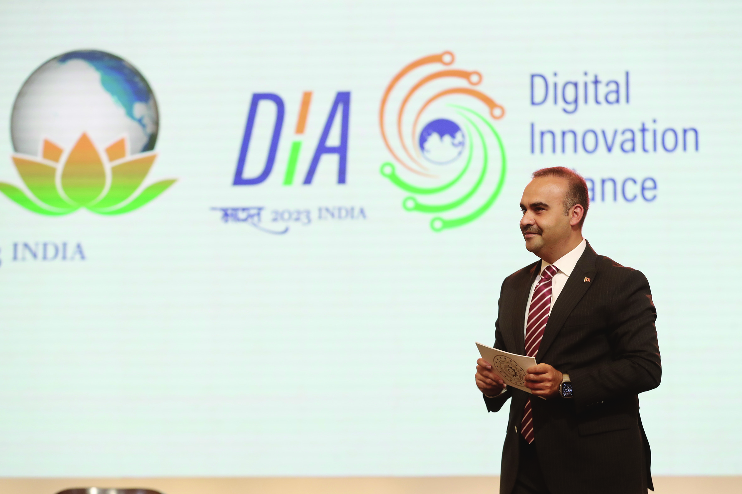 Turkish Minister of Industry and Technology, Mehmet Fatih Kacır, talking about the progress made by Türkiye’s entrepreneurship ecosystem in recent years, at the G20 Digital Economy Ministerial Meeting held in Bangalore, India, in August, 2023. MINISTRY OF INDUSTRY AND TECHNOLOGY / AA