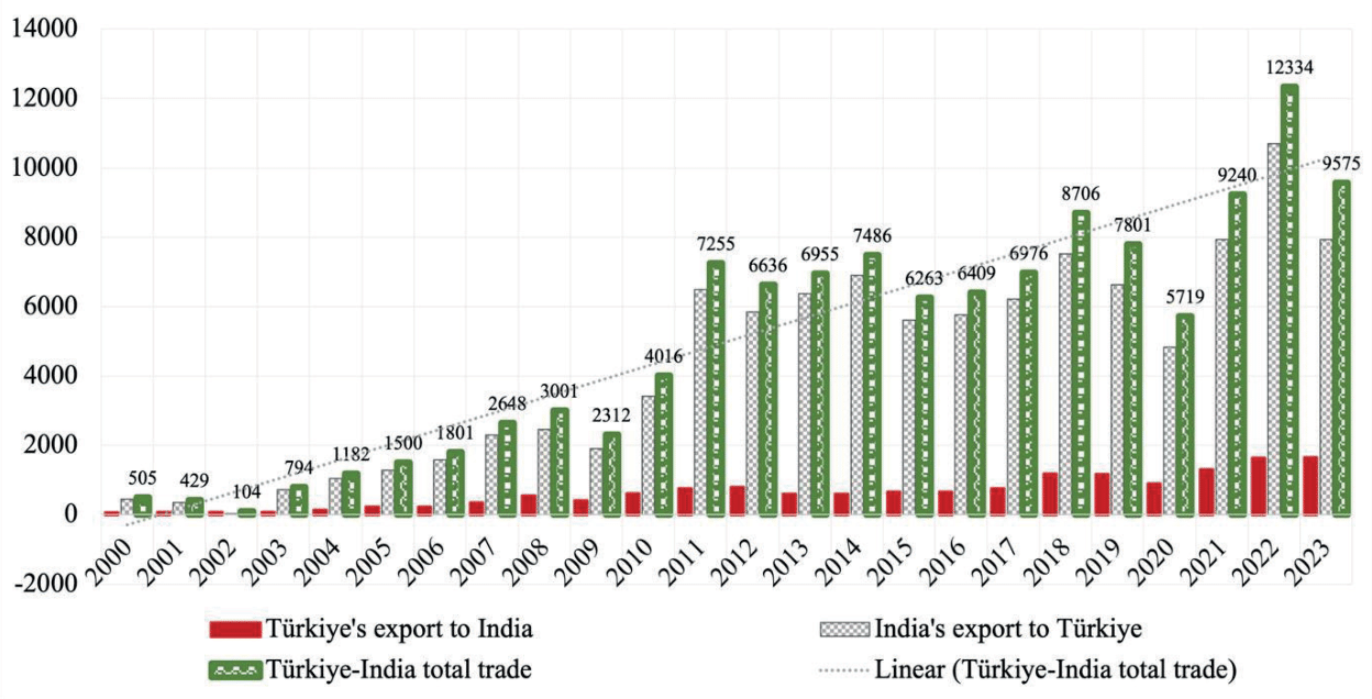 Graph 1: Türkiye-India Bilateral Trade, 2000-2023 (Million $)