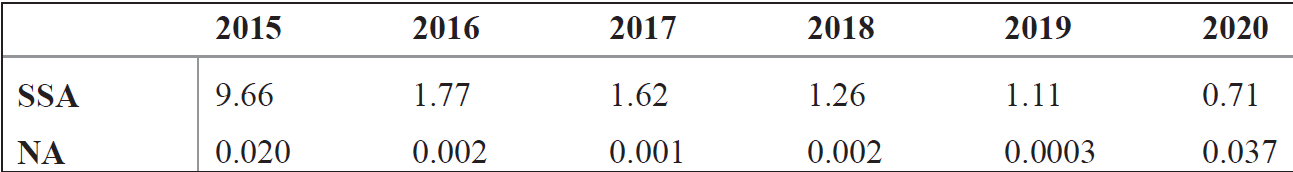 Table 2: SSA and North Africa’s Share of Türkiye’s Total Gross ODA Disbursement (%, 2015-2020)