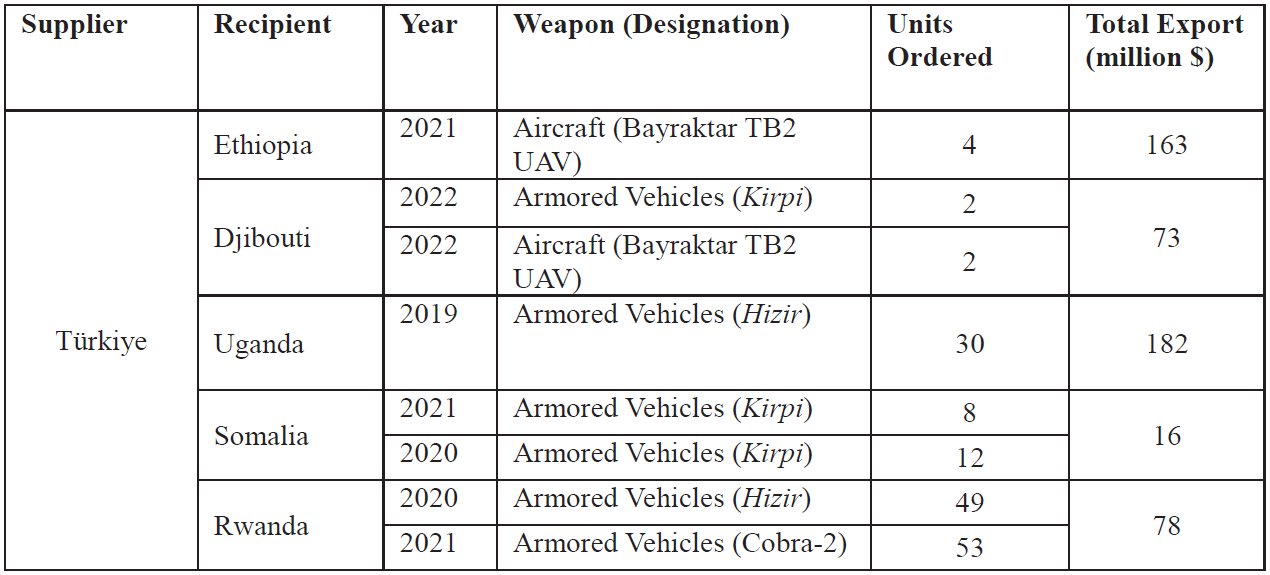 Table 2: Selected Weapons Exports from Türkiye to East African Countries (2018-2024)
