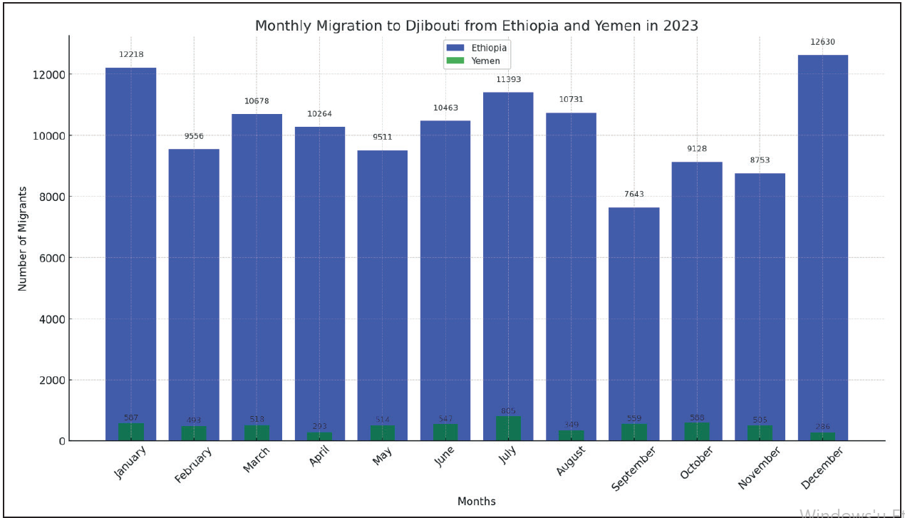 Graph 2: Migratory Flows Arriving from Ethiopia and Yemen in 2023