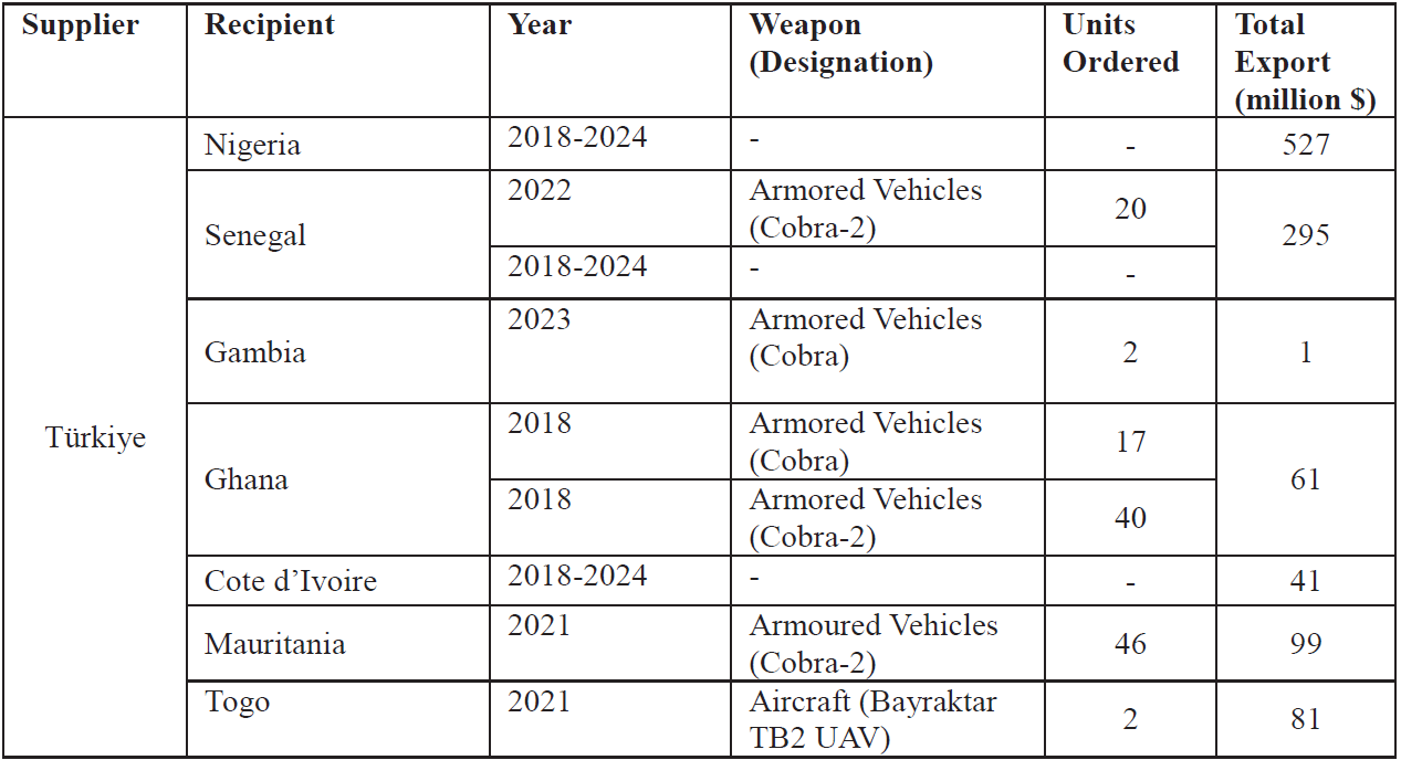 Table 3: Selected Weapons Exports from Türkiye to West African Countries (2018-2024)