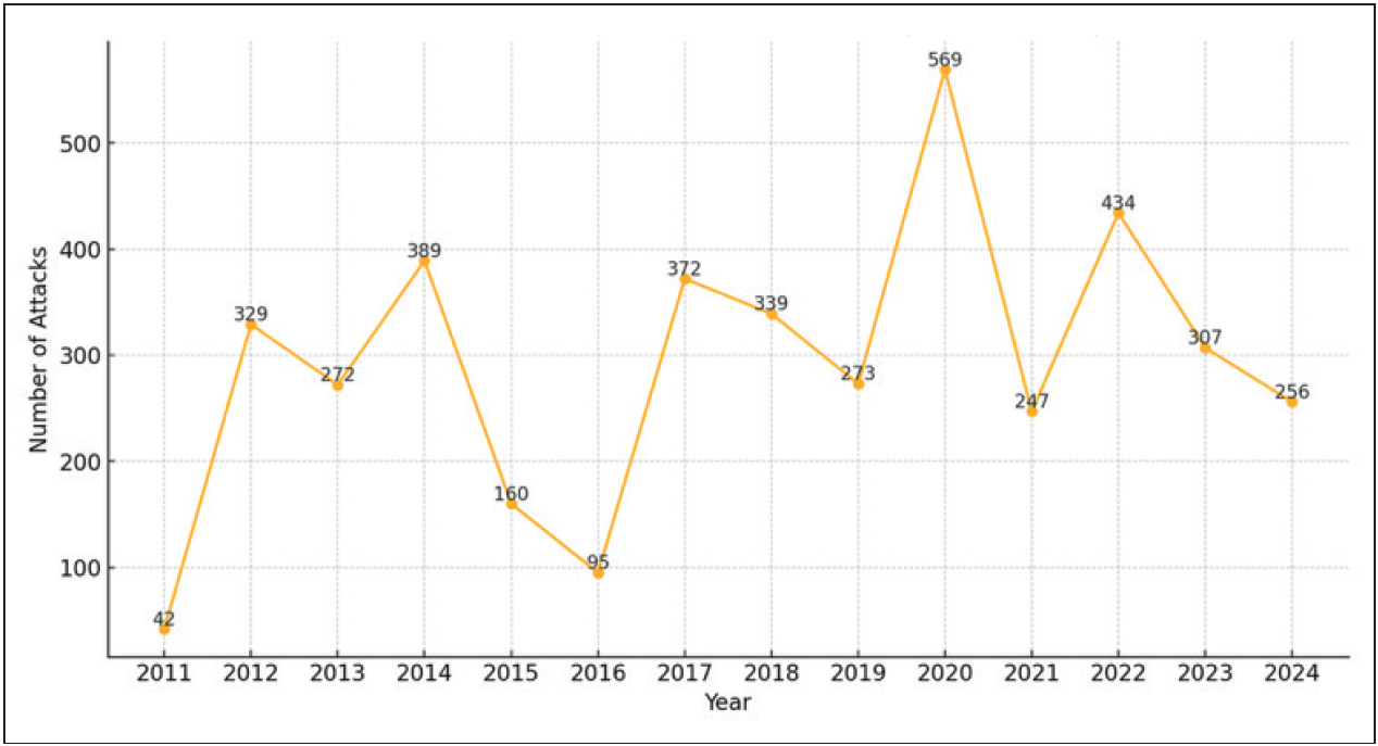 Graph 4: Number of Attacks in Western Africa (2011-2024)