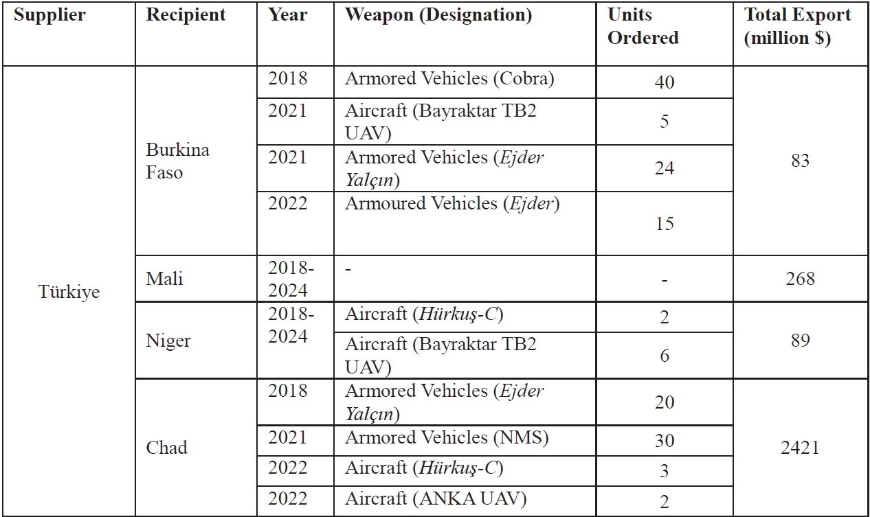 Table 4: Selected Weapons Exports from Türkiye to Sahel Belt Countries (2018-2024)