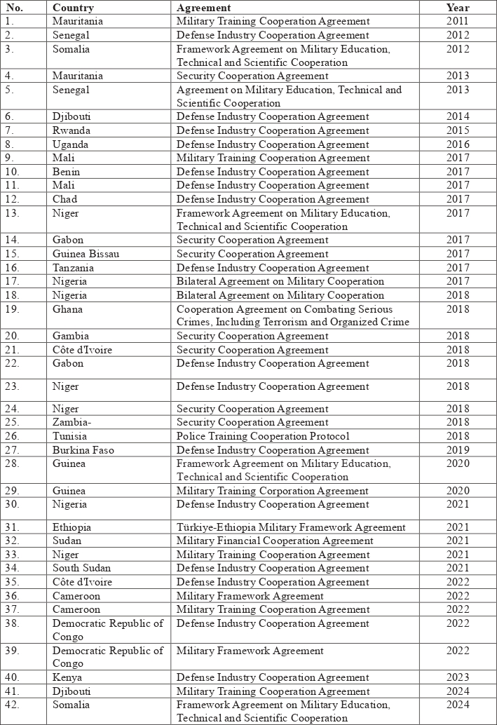 Table 1: Selected Security and Defense Cooperation Agreements Signed between Türkiye and Sub-Saharan African Countries (2011-2024)